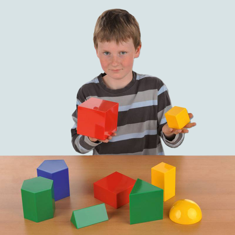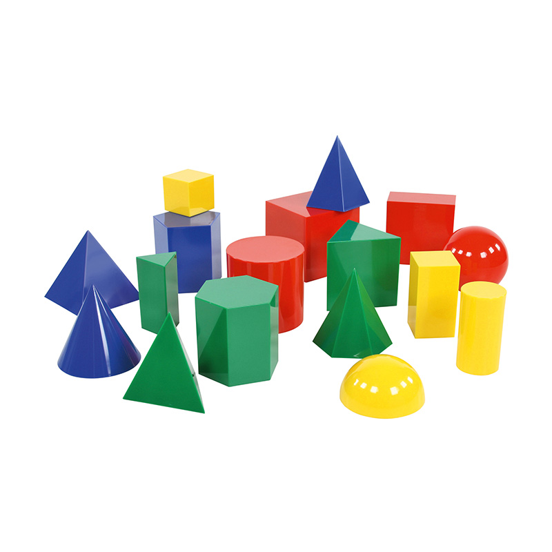 Farebné plastové telesá slúžia ako názorná pomôcka na prvé oboznámenie detí s priestorovou geometriou. Vďaka veľkosti (cca 10 cm) sú dobre viditeľné aj zo zadných lavíc, no zároveň ich možno bezpečne vkladať do rúk deťom. Farebné prevedenie uľahčuje orientáciu a udržiava pozornosť mladších žiakov.