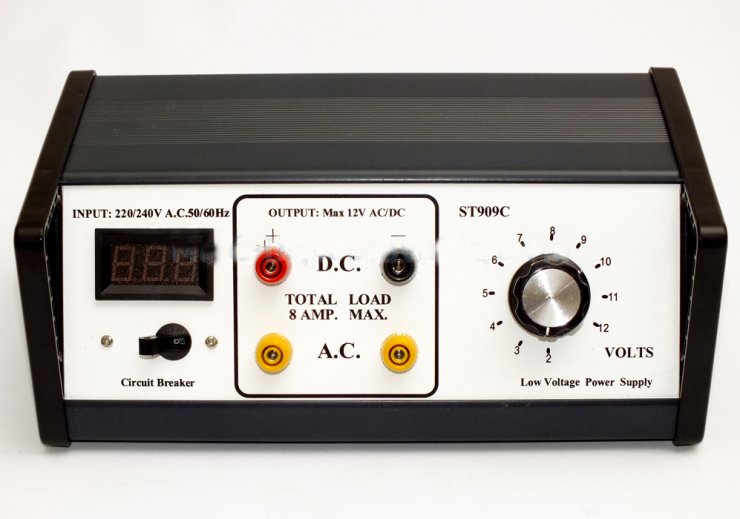 Stabilizovaný napájací zdroj s protiskratovou ochranou, zabudovaný digitálny voltmeter,